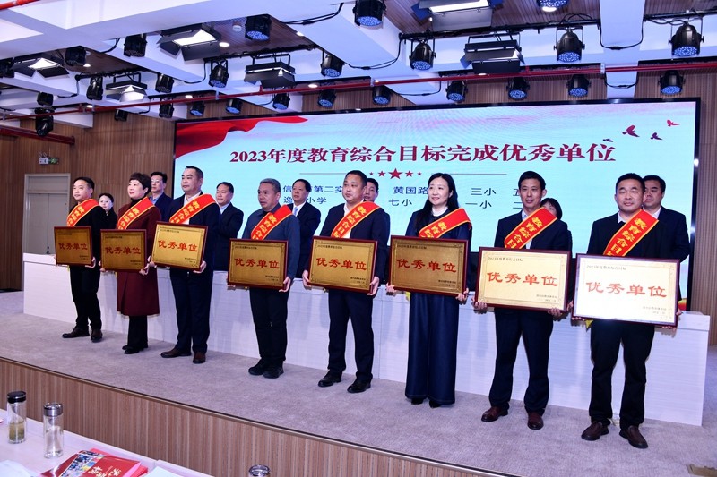 为2023年度教育综合目标完成优秀单位颁发奖牌