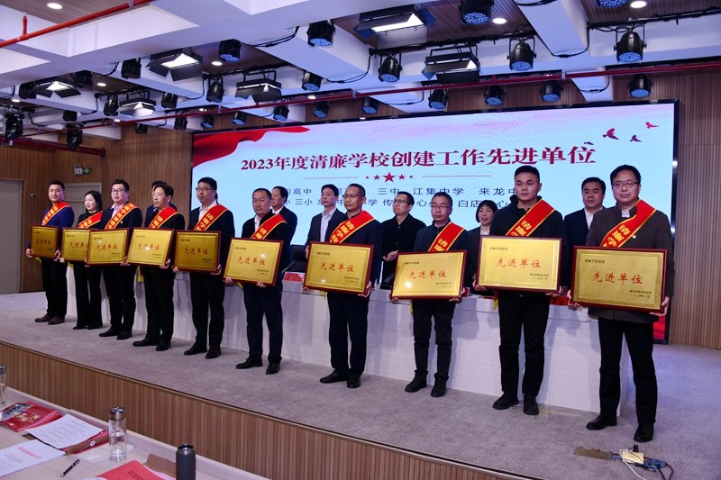 为2023年度清廉学校创建工作先进单位颁发奖牌