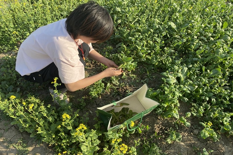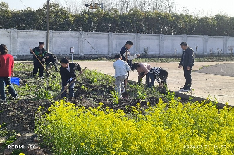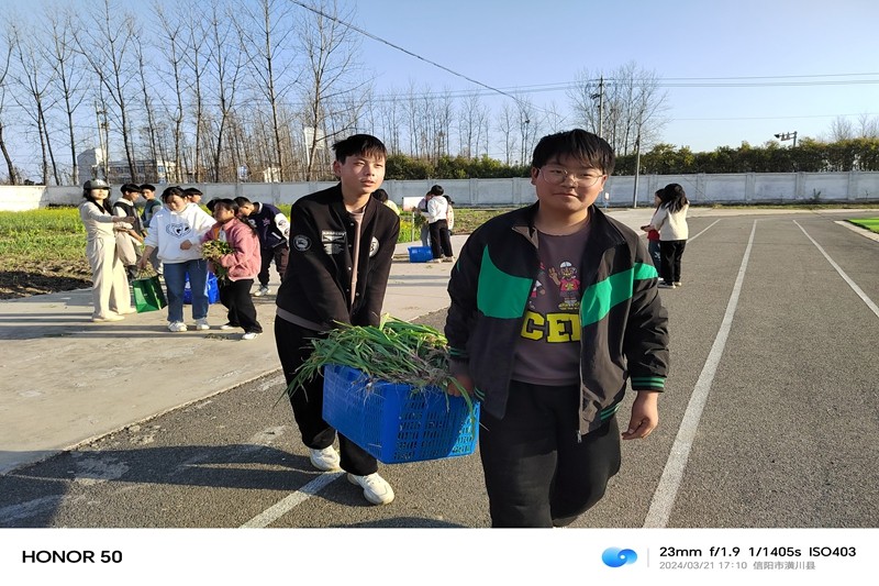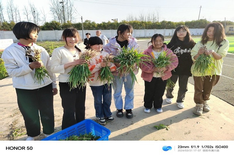 劳动基地里,一行行菜畦上生长着各式各样的蔬菜。绿油油的青菜,菜叶在微风中轻轻摇曳;细枝嫩叶的香菜,看上去格外娇嫩;层层叠叠的菠菜,微风轻拂,偶尔露出一点红色的叶脉。学生们拿着菜篮子在基地里忙得不亦乐乎,他们有的认真聆听着指导老师讲解采摘蔬菜的技巧,有的忙着拔出一棵棵翠绿的蒜苗,掐下一根根嫩绿的菜苔,挖起一颗颗鲜嫩的香菜、菠菜、油麦菜,他们就像寻找到宝藏一样,惊喜地叫喊着、欢呼着、采摘着,剪断菜根、扒下枯叶,将收获的蔬菜运出菜地,并摆放整齐,整个劳动基地里充满了欢声笑语,不一会儿,每个篮子都装得满满当当。同学们脸上洋溢起了满满的自豪感和成就感。当沉甸甸的劳动果实,被做成一道道可口的佳肴,品尝着自己亲手种植和采摘的蔬菜,大家内心有着说不出的自豪和骄傲。
