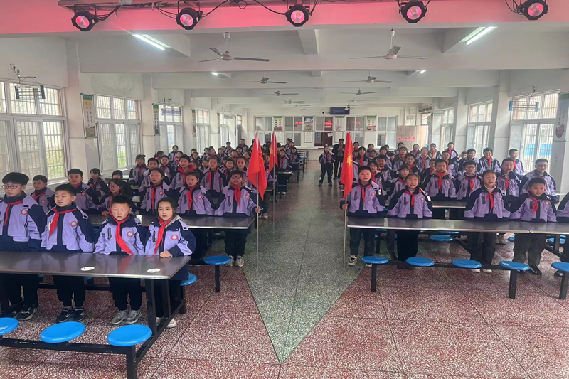 全体队员跟着大队辅导员黄老师呼号:时刻准备着,他们用自己充满力量的声音表达了对少先队的热爱与忠诚,展现了少先队员们的团结与凝聚力。