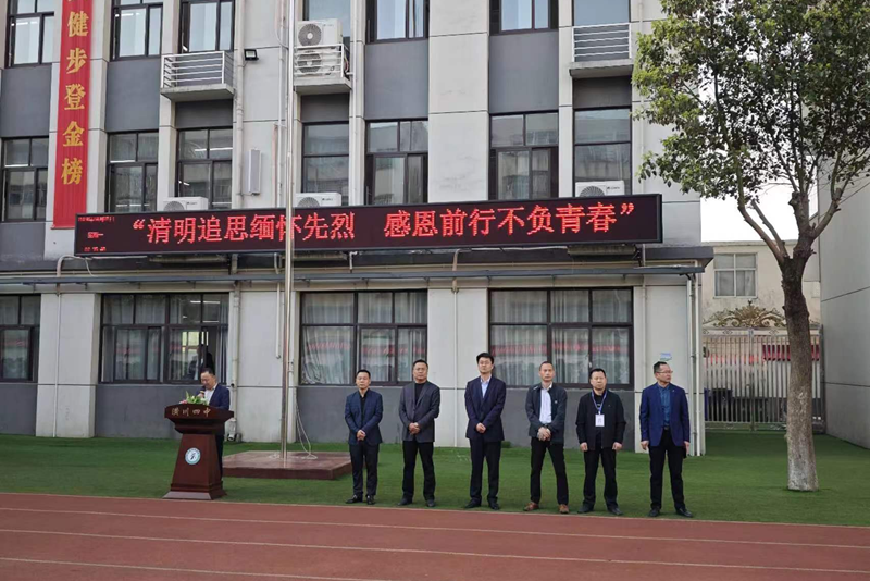 最后,潢川四中党支部书记、校长曹伟在讲话中指出清明节人们祭拜祖先,缅怀先烈,不是要我们沉浸在无限的痛苦之中,而是为了更好地激发我们奋斗前进的斗志;祭扫前辈,缅怀过去,不是要我们对历史耿耿于怀,而是要我们化悲痛为力量,更好地开创未来。他鼓励同学们,向先烈学习不屈不挠的精神,即使前路会有艰险和困难,我们一定能勇于面对挑战,用实际行动呼唤祖国美好的明天。