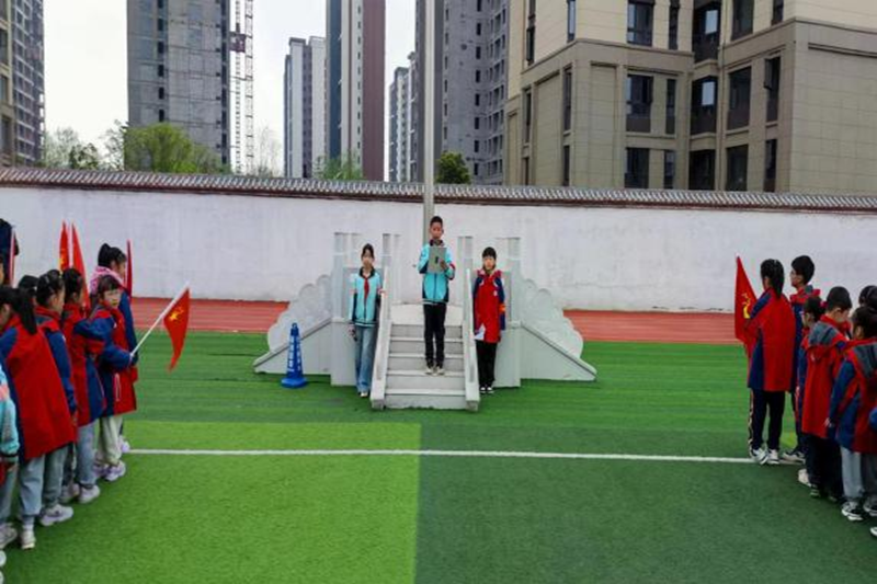 仪式上,五二中队国旗护卫队的队员们迈着铿锵有力的步伐,护送着国旗进场,在庄严的国歌声中,鲜艳的五星红旗冉冉升起、迎风飘扬。紧接着,由五二中队的张煜林同学以“做诚实守信的小学生”为题进行国旗下演讲,向大家呼吁作为小学生的我们应该从细微之处入手,践行诚信。做一名诚实守信的优秀的小学生。