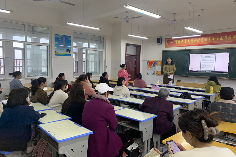 本网讯(李含雨)为更好促进学校与家庭教育的深度融合,定期交流孩子的学习和发展情况,形成良好的家校合作模式。4月7日,潢川县实验中学于琼琼工作室成功举办了第二期家长课堂活动。学校党支部书记、校长晏全林,副校长熊小键、宋长玲,法治副校长于琼琼、学校心理教育讲师杨正东主任及小学部全体家长出席本次活动。活动由副校长宋长玲主持。