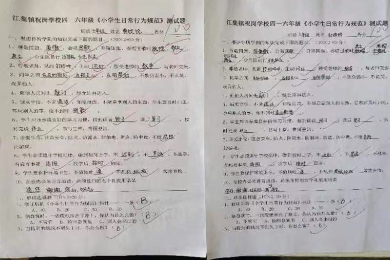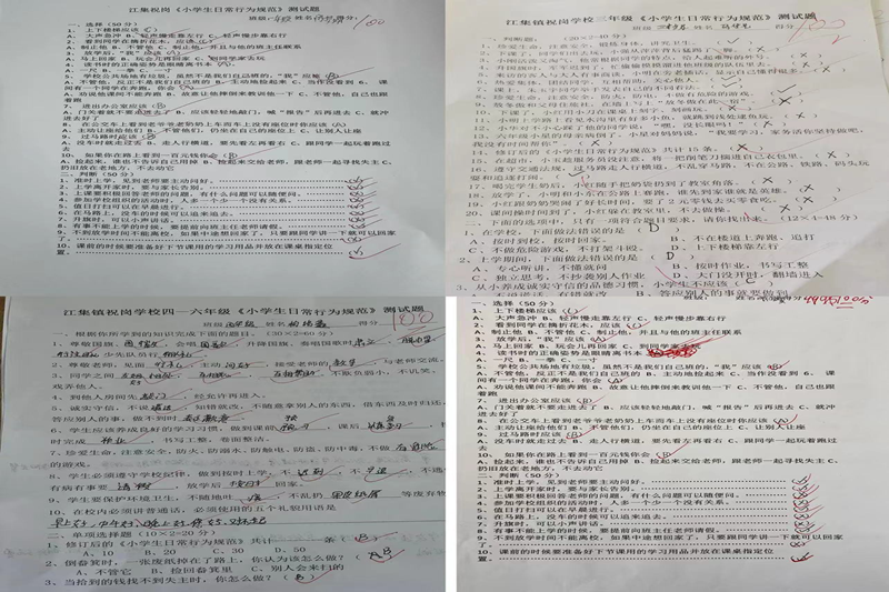活动主要以新版《小学生日常行为规范》为测试内容,以学生日常生活行为场景作素材,题型多样。测试中学生们专注读题,仔细作答,信心十足,处处彰显了要把“规范”入脑、入心的决心。