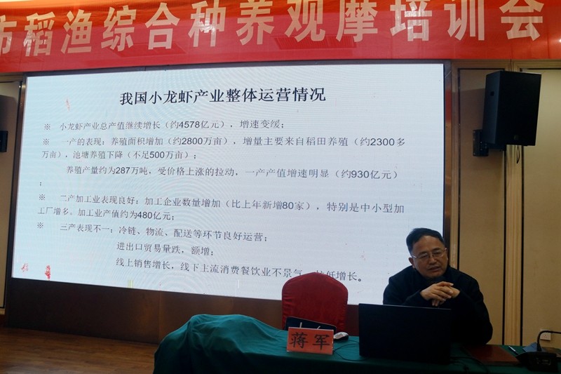 随后,蒋军、陶忠虎、奚业文三位专家教授分别从不同角度进行了精彩授课。他们深入剖析了稻渔综合种养的关键技术、市场前景以及可持续发展路径,为参会人员提供了宝贵的经验和启示。