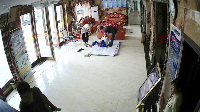 9月2日晚接一网友反映:昨天我去明珠游泳馆健身,刚进大门看见大厅里趟个老头,吓我一跳。到里边一打听才知道是原来有人在游泳馆摔倒了,游泳馆当时也出钱送医院瞧了,现在还来要赔偿,估计没谈拢就给老头抬过来了,看样子是要讹钱了。