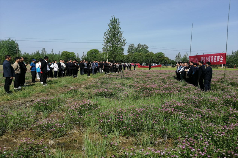 本网讯 4月18日,河南省农科院院县共建现代农业科技综合示范县潢川县稻-肥轮作技术观摩暨培训会在传流店乡成功举办。本次会议旨在展示省农科院—潢川县院县共建工作阶段性成果,尤其是种植绿肥在促进县优质稻米产业发展中的有效应用,充分发挥绿肥在实现农业生产减施增效、粮食稳定增产、农民持续增收、助推双碳行动和美丽乡村建设中的示范引领作用,推进县高效绿色循环农业建设。河南省农科院推广处副处长陈琼、粮作所所长程泽强、资环所副所长张翔、信阳市农科院院长钟思志、县委副书记吴永阳等领导专家出席会议,各乡镇(场)农业分管领导、农技人员、种植大户代表等100余人参加会议。