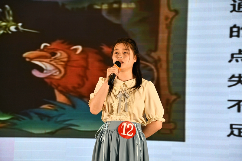 在分享环节中,14名学生热情洋溢地分享了自己的阅读心得。他们有的诵读名著经典,与文学大师进行心灵的对话;有的讲述生动有趣的故事,时而慷慨激昂,时而温柔如水;还有的赏析绘本漫画,娓娓道来,趣味横生。整个活动现场气氛热烈非凡,台下的家长、学生、教师都沉浸在阅读的快乐中,掌声此起彼伏。