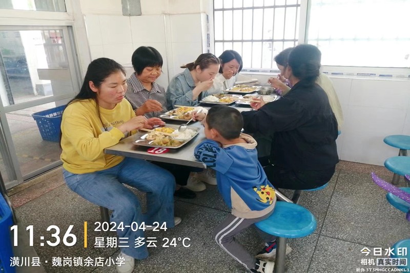 本网讯(彭文玉)为进一步严控学校食品安全风险,加强家校沟通,切实维护学生在校饮食安全,提高学校食品安全透明度。4月24日,潢川县魏岗余店小学开展家长陪餐活动,活动邀请一至六年级家长代表到校参观食堂并陪同就餐,与孩子们共享美好“食光”。