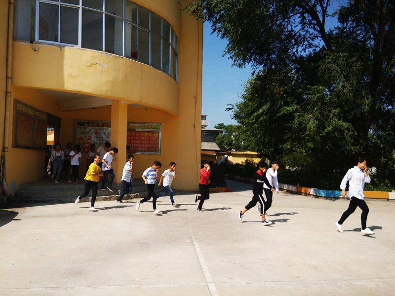 潢川县白店乡中学开展消防应急疏散演练活动