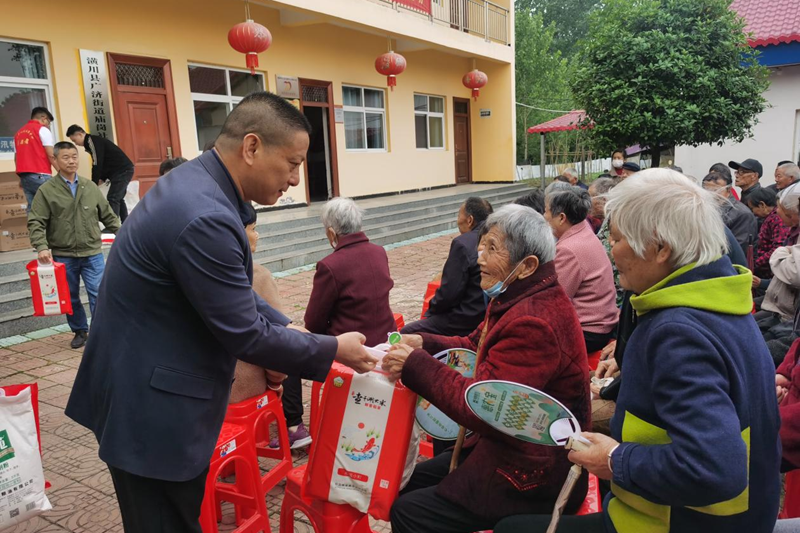 活动现场,志愿者们与老人们亲切交流,并为老人们送去米、面等慰问品。