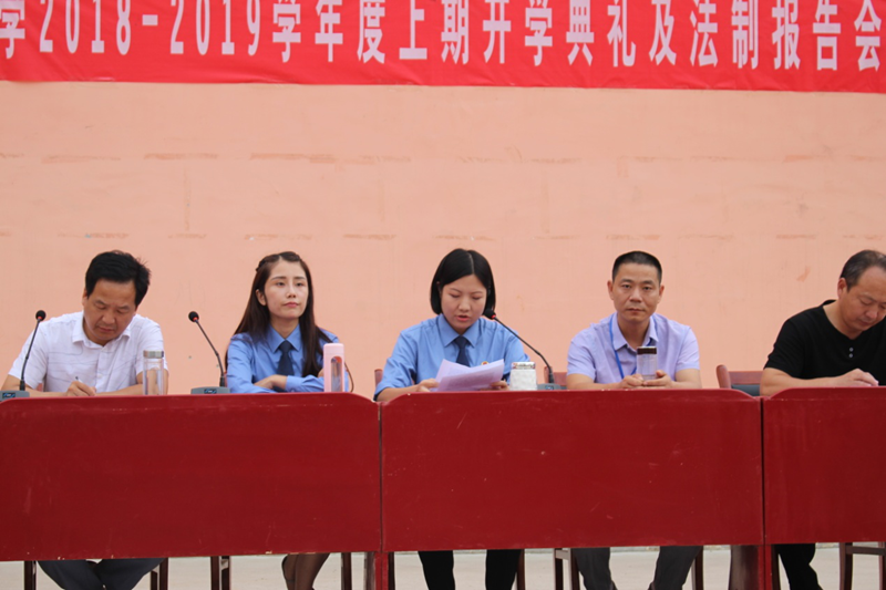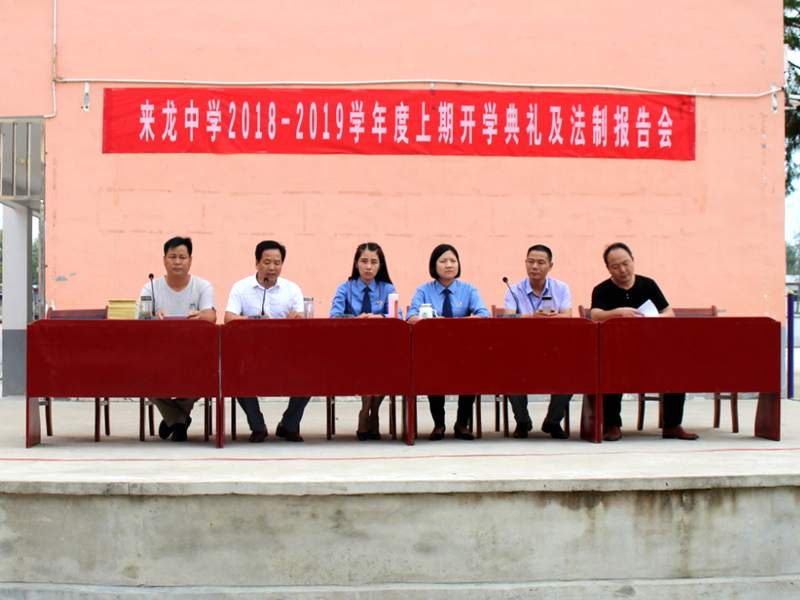 潢川网9月7日讯(陶千)9月6日下午,潢川县来龙中学在教学楼东广场隆重召开2018-2019学年上期开学典礼暨法制报告会。该校有关领导及县人民检察院检察官出席会议。会议由副校长杨仕军主持。