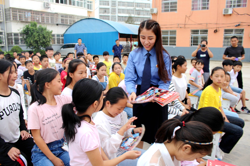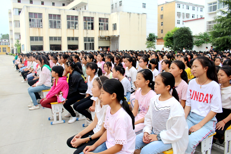 在雄壮的国歌声中,大会正式拉开帷幕。来自潢川县人民检察院未检科尹思泉科长、陈彩虹检察官,用生动丰富的案例,从理论和事实两方面,结合当前校园暴力的态势,给全体师生上了一堂精彩的法治课,并向同学们赠送了法治教育读本。