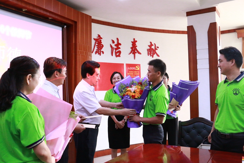 县委书记赵亮向优秀教师代表献花