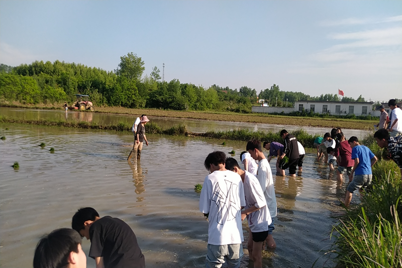阳光温暖,劳动实践基地绿意盎然。学生们脱下鞋子,挽起衣裤,赤足踏泥,手握嫩绿苗,在农民教师的指导下,小心翼翼地将秧苗一株株插入田中。学生们的每一滴汗水都凝聚着他们的努力和坚持,他们的身影与稻田交织成一幅美丽的画面。