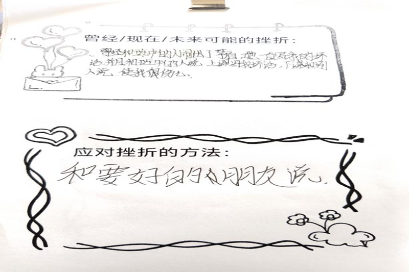 通过了解奥吉面对挫折的承受力,老师们用亲切的话语告诉学生不要怕在学习中摔跟头,要从失败中吸取教训,坚强努力,勇敢面对挫折并战胜它。老师们带着学生一起写下自己的抗挫秘籍,并与大家分享交流。