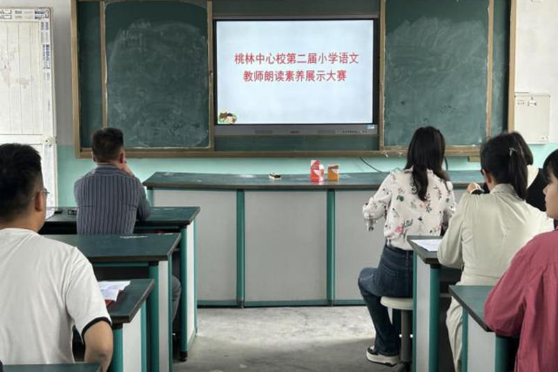 5月14日下午,决赛现场激烈而隆重,13位决赛教师精神饱满、热情洋溢,把一页页文字的内涵演绎得淋漓尽致、精彩纷呈。同时为了真正地体现公开、公平、公正,桃林中心校还利用了“问卷星”平台,把每位参加决赛选手的视频上传,请全镇老师网上投票,最后评选出一等奖6名,二等奖7名。其中获得各年级朗读第一名的教师还将代表桃林中心校参加全县第二届语文教师朗读素养展示大赛。
