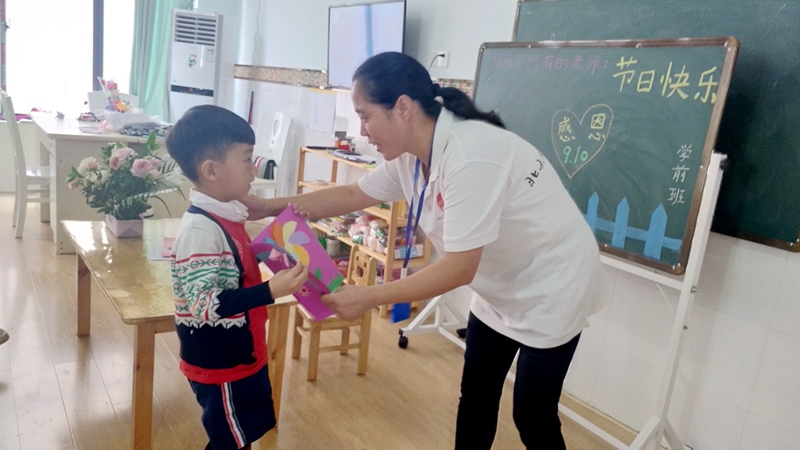 暖暖教师节,深深感恩情,这是心灵的沟通,情感的融合。此次主题活动,孩子们用实际行动感恩教师,并尝试着用自己的特有方式表达着对老师的浓浓深情。让老师们在活动中深深地感受到孩子的敬爱之情。同时,也让教师思考自己的责任,用爱心去呵护孩子,用实际行动去关爱孩子。