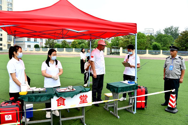 活动现场,模拟实验中学发生食物中毒事件后,县医院迅速行动,120急救车第一时间抵达现场,医护人员立即对“中毒”学生实施急救措施,为后续的治疗争取宝贵时间。县卫健委接报后,立即启动IV级食品安全应急响应,流调人员迅速进行现场调查、采样和检测,为准确判断事件原因和采取针对性措施提供了有力的依据。