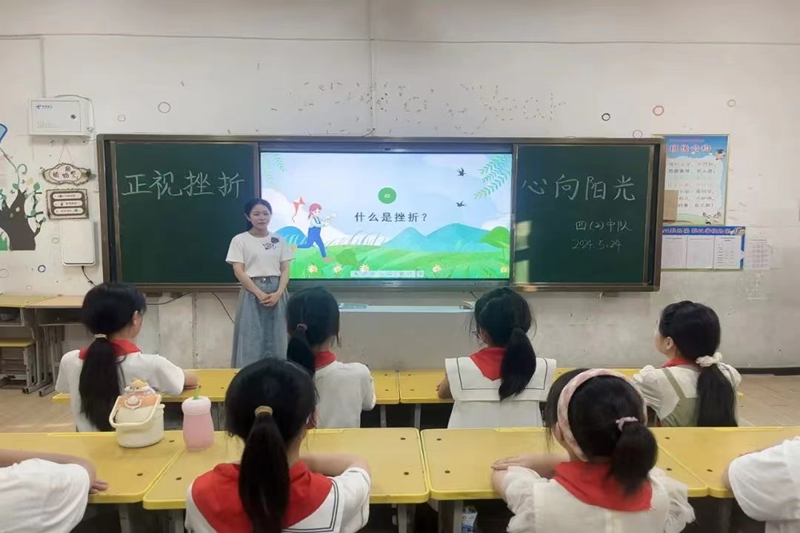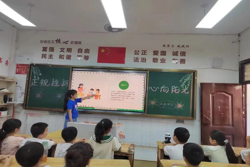 同学们纷纷发言,积极分享了自己在学习和生活中遇到的挫折经历。老师也针对同学们遇到的问题提出了解决方法,如心理健康手势操、寻找他人倾诉等,引导同学们学会自我调节情绪,用正能量的方式解决生活中出现问题。
