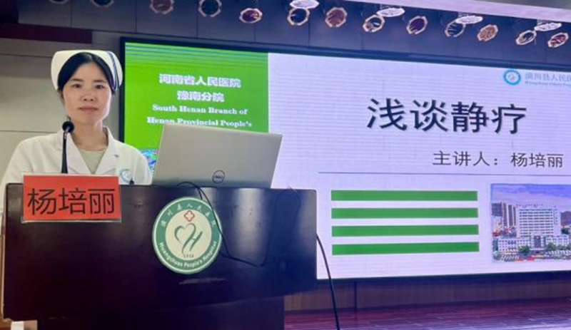 随后周阳、王新燕、杨培丽、刘智慧、任远鸽分别为大家做了《2024年潢川县护理质量评价标准》、《护理不良事件管理》、《静脉治疗规范及质量标准》、《压力性损伤的预防与护理》、《成人住院患者静脉血栓栓塞症的预防护理团体标准》的现场授课。