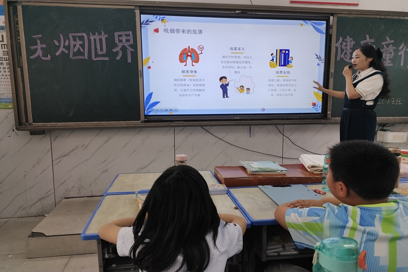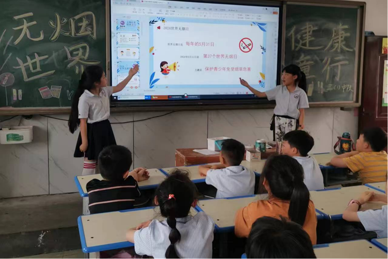 本网讯(曾荣)今年5月31日是第37个世界无烟日,为进一步提高全民健康意识,保护青少年免受烟草危害,加强控烟科普宣传,倡导文明健康生活方式,潢川四小开展了“无烟世界,健康童行”主题班会活动。