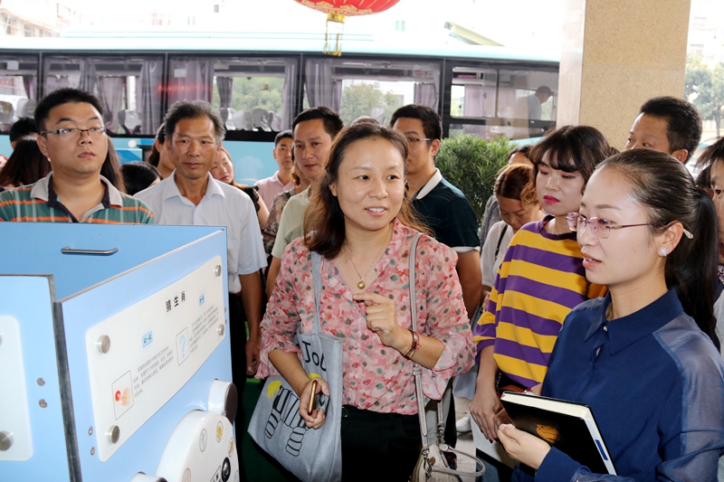 同时,新县科普大篷车助阵培训会现场。培训结束后,各县区科普讲解员现场观看了科普大篷车的6箱展品展件,李部长现场指导讲解员如何组装、如何讲解展件,同时分享多年来巡展的经验,学员们听的全神贯注。