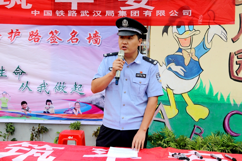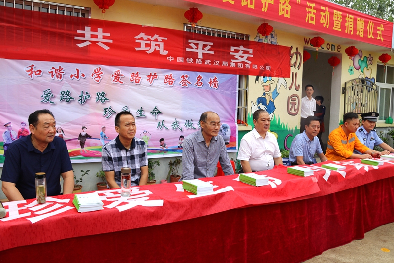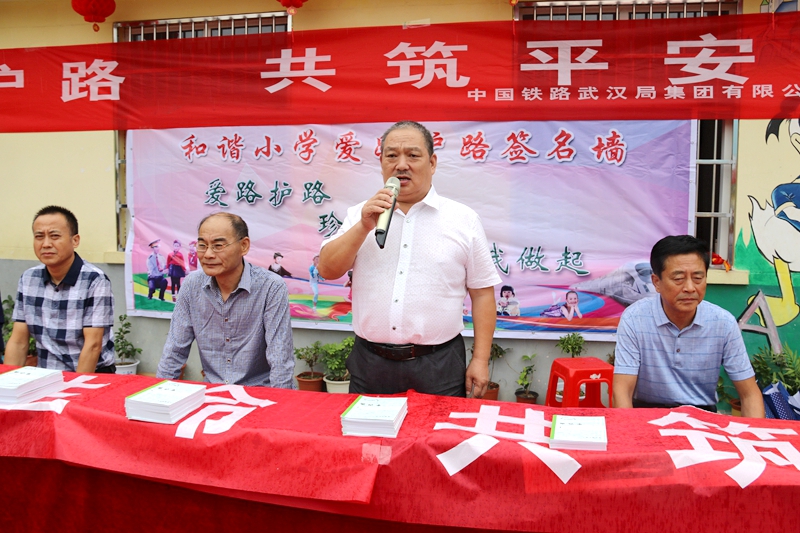 和谐校区徐祥忠校长热情洋溢的致辞拉开了活动序幕。王香铺小学校长杨帆宣读了活动方案,陈所长向全校师生讲解了铁路安全常识和法律法规,少先队大队长向全体师生发起了爱路护路的倡议,全体少先队员共同朗读了爱路护路不字歌并进行了宣誓,学校领导与各班班主任鉴定了爱路护路责任书,500余名师生集体签名,出席活动的领导现场为“爱路护路小卫士”颁奖,充分调动了学生参与活动的积极性。最后,武汉铁路局安监宣传大队张大队长做总结性讲话,要求爱路护路活动持续推进,确保铁路运输安全。