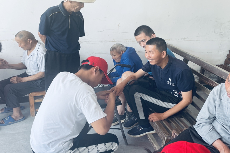 活动中,志愿者们为老人剪指甲、打扫卫生为、包粽子,随后,学生代表发言给老人送去祝福。