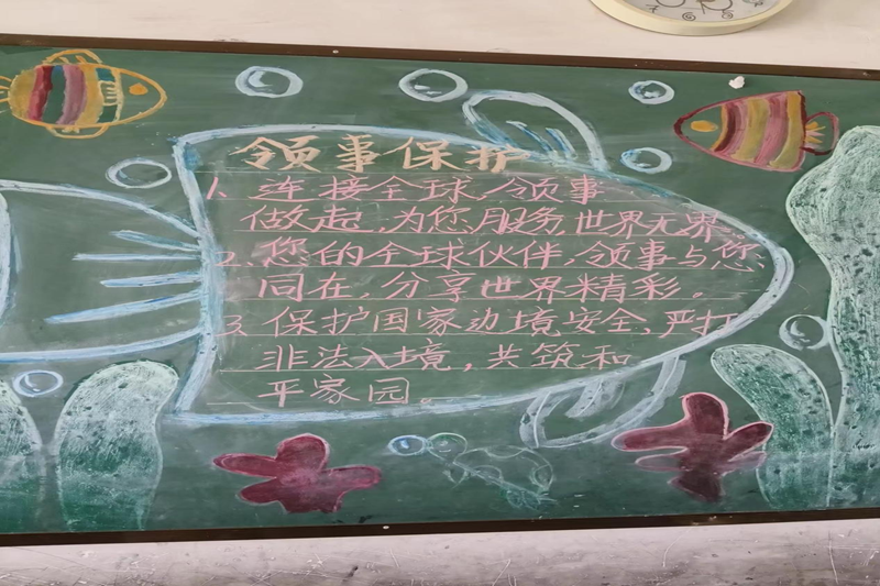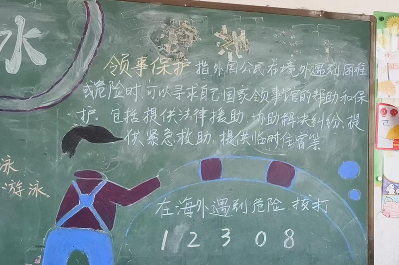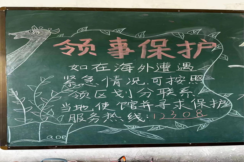 接着,各班积极创作黑板报,为学生营造学习中国领事相关知识的良好氛围,普及中国领事海内外知识,提高学校师生海外安全意识和自我保护能力。