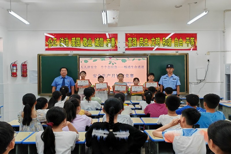 本网讯(鄢秋莹)2024年6月是全国第23个安全生产月,6月14日,潢川五小紧扣“人人讲安全,个个会应急—畅通生命通道”这一主题,精心组织并开展了安全生产月知识竞赛活动,法治副校长徐士坤及警务联络员周从荣积极参与了本次活动。