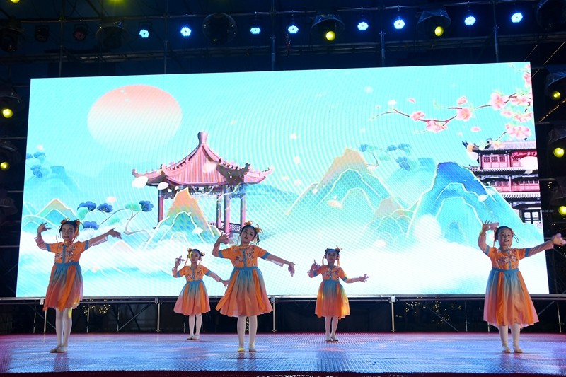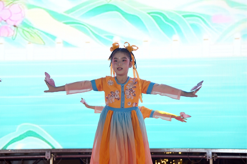 汇演在一曲气势恢宏的开场舞中拉开了序幕,孩子们用灵动的身姿和激昂的热情瞬间点燃了现场的气氛。随后,一个个精心编排的节目轮番上演,给观众带来了一场视觉与听觉的双重享受。《盛世敦煌》展现了敦煌文化的瑰丽与神秘,舞者们优美的姿态和华丽的服饰仿佛将观众带回到了那个遥远的盛世;《淡妆浓抹总相宜》则以其柔美的舞蹈动作和诗意的表达,烘托出了中国古典文化的韵味;充满童真的《我爱吃蔬菜》,小朋友们用可爱俏皮的表演倡导了健康饮食的理念;而《渔梦渔阳》凭借着其灵动的舞蹈编排和优美的音乐旋律,描绘出了一幅如梦如幻的渔家生活画卷。