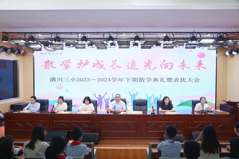本网讯(王丽)荷香满塘,蝉鸣树梢。走过春的明媚,迎来夏的蓬勃,在全体师生与家长们的共同努力下,一起度过了一个收获满满的学期。为了更好地展示、见证同学们一学期以来的努力成果,引导他们安全、充实、有意义地度过假期,7月5日上午,潢川三小举行了2023-2024学年度下期散学典礼暨表优大会。全体班子成员、各班班主任和优秀少先队员代表欢聚在会议室,副班主任带领其余学生在各个分会场同步收看会场直播。大会由德育处冯睿主任主持。