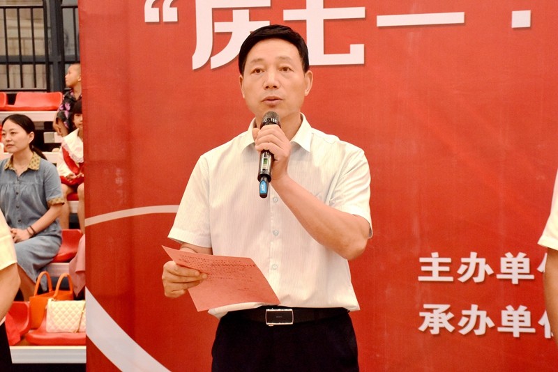 本网讯 为庆祝中国共产党成立103周年,全面贯彻落实习近平总书记关于体育工作的指示精神,实施全民健身国家战略,推动体育强县、运动潢川建设,7月16日晚,潢川县2024年“庆七一·枫火体育杯”男子篮球赛开幕式在县体育服务中心举行。县政协党组书记、主席祁璟,县委常委、宣传部部长、副县长张胜利,县人大常委会副主任、县总工会主席齐新峰及相关单位负责同志出席开幕式。