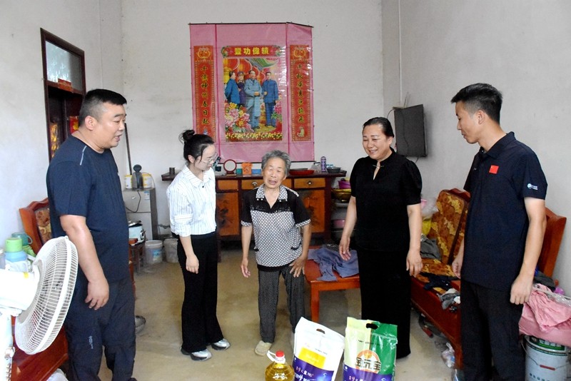本网讯 日前,受极端天气和地理条件影响,潢川县遭遇多日连续强降雨,谈店乡出现了洪涝灾害。7月24日下午,爱心企业天福顺超市及洋河股份一行到现场慰问困难群众。乡党委副书记王静陪同。