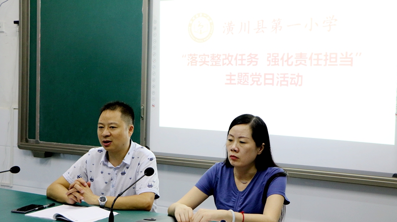 潢川网9月19日讯(刘静 张蓬)9月18日上午,潢川一小党支部在德润楼四楼会议室开展主题为“落实整改任务,强化责任担当”的主题党日活动。全体党员参会,会议由副校长赵素霞主持。
