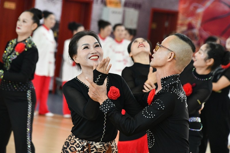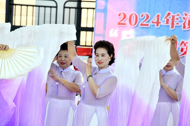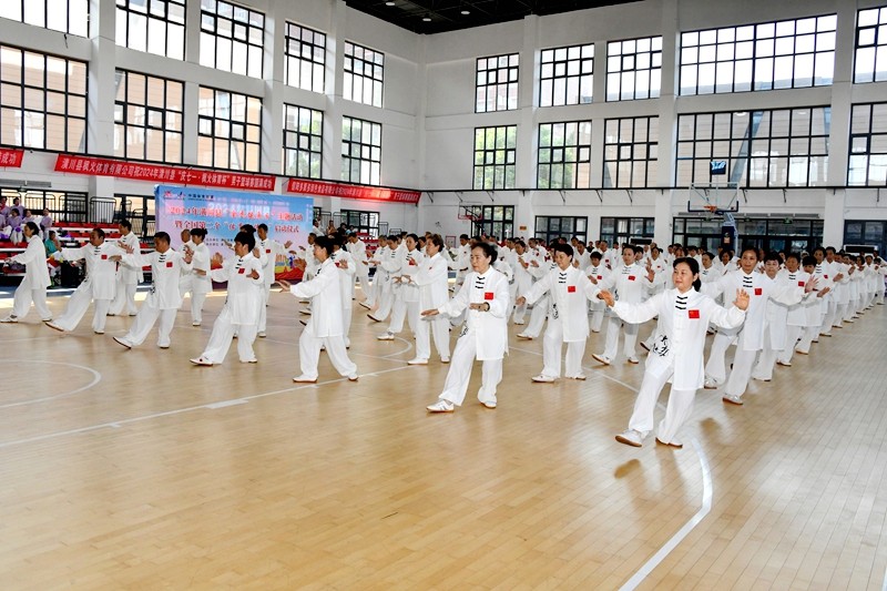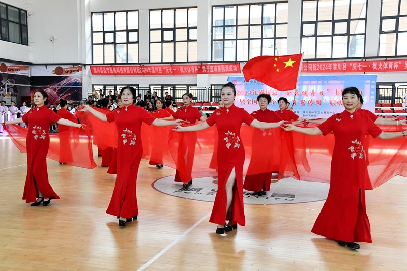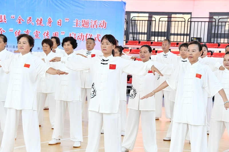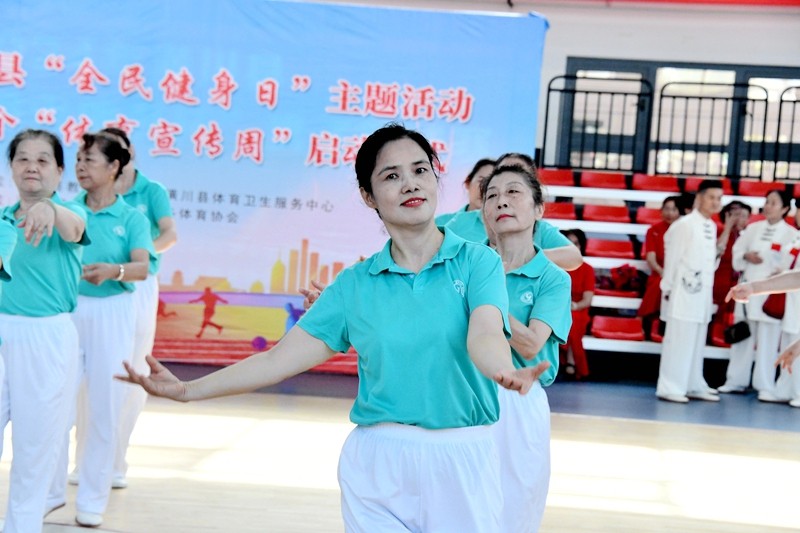 启动仪式上,来自全县的16支队伍、600余名健身爱好者欢聚一堂,各自展现风采。少年武术表演刚柔相济,尽显中华武术的深厚底蕴与博大内涵;舞龙表演气势恢宏,灵动的巨龙在空中翻腾翱翔;篮球操活力四射,展现出青春的激情与蓬勃朝气;健身气功动作连贯流畅,调和身心;太极拳(剑)刚柔并蓄,舒缓之中蕴含力量;广场舞热情洋溢、欢快活泼,跳出了对生活的挚爱;瑜伽表演优雅宁静,体现了身心的和谐统一;旗袍走秀端庄大方、典雅优美,展现了东方女性的独特韵味;长扇舞飘逸洒脱,舞动出迷人的风姿;交谊舞优美流畅,传递着和谐与欢乐;汉舞王伦巴更是将传统与现代完美交融,给人带来美的享受。