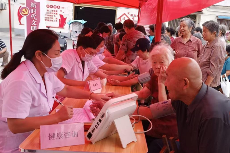 活动现场,医生们为群众免费义诊、检测血压、血糖、身高体重,开展健康咨询和健康生活干预等活动,通过悬挂宣传横幅、设置展板、发放健康科普宣传资料和限盐罐、限盐勺、控油壶、笔记本、抽纸、手提袋、湿巾、健康工具包等健康支持性工具,倡导居民改变不良的生活习惯,合理膳食、戒烟限酒,经常性地参加体育锻炼,吃动平衡,积极学习健康知识,主动掌握健康技能,践行文明健康的生活方式,“做自身健康的第一责任人”,预防和控制患慢性病的危险因素,重点科普了体重管理知识与技能。