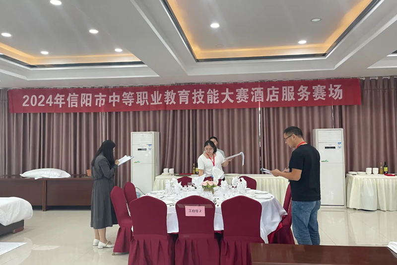 本次比赛包括酒店服务与茶艺两个赛项,来自全市各所中职学校的参赛选手,参加了这两个赛项的角逐。9月12日上午7点40分,选手们分别到各自赛场签到、抽签,比赛正式开始。比赛过程中,信阳市教育教学研究室主任王艳红,潢川县教体局职教股股长王金保,潢川县职业中专党总支书记汪志术等来到赛场巡视,观摩参赛选手的精彩表现。各参赛选手沉着冷静、技能娴熟,用实际行动展现了信阳市中等职业学校的职业素养、精神风貌和职业教育改革成果。