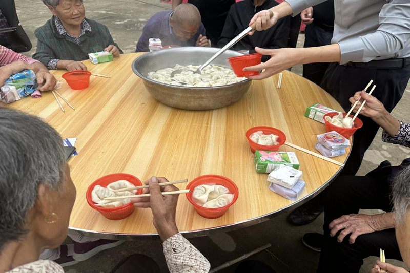 活动现场,志愿者们有的在为乡亲们包着饺子,大家分工明确,调馅、和面、擀皮、包饺子,忙得不亦乐乎。有的在为大家分发月饼,戏曲表演…老人们一边听戏,一边拉着家常、品月饼等候饺子宴开席,个个脸上洋溢着幸福的喜悦……这岁月静好的一幕幕让今年的中秋佳节弥漫着满满的温情。