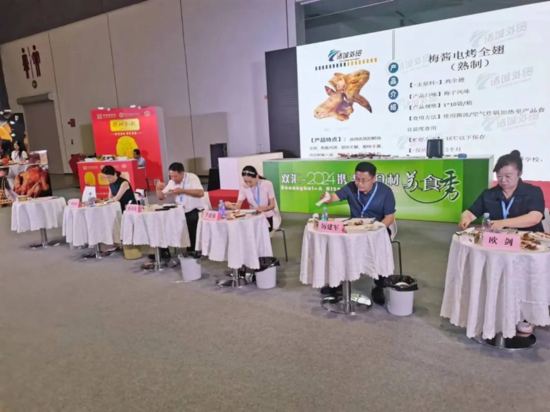 9月10-11日,中国肉类协会组委会举办了2024“携手好食材、烹饪美食秀”活动。先后有近50家知名畜禽食品企业申报参加美食秀活动,其中包括很多中华老字号、中国非物质文化遗产品牌单位,肉类行业头部企业。华英农业旗下华英樱桃谷食品公司以华英烤鸭为原料,现场烹制成“川香冒烤鸭”,鲜香扑鼻,味型俱佳。在烹制现场,华英烤鸭飘散的诱人香味吸引了大量观众将展台围得水泄不通,都想品尝一下享誉世界的华英美食。经过评委们的专业品鉴评定,在9月12日举行的颁奖典礼上,华英烤鸭获得了金奖,这也是继2023年摘得“携手好食材、烹饪美食秀”“美食金奖”之后再获该项金奖,凸显出华英产品名声确实不同凡响。