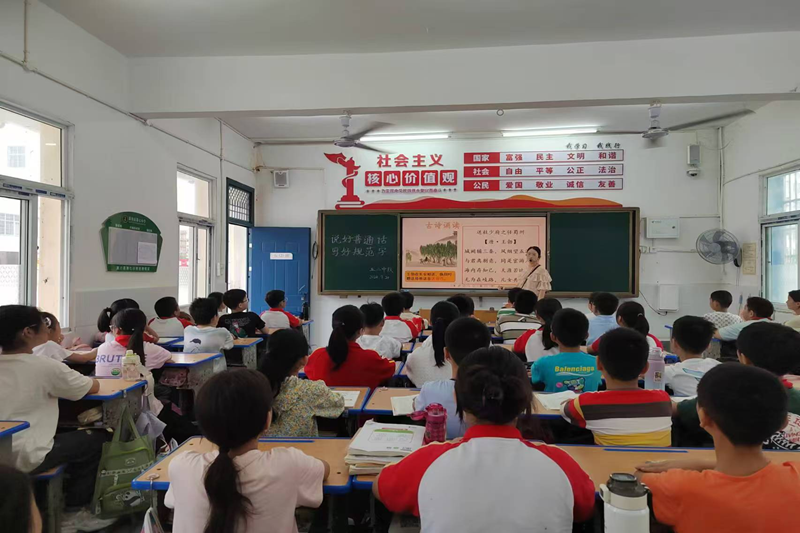 学校利用广播站对全校师生发出“说好普通话 写好规范字”的倡议;各班语文老师利用阅读课时间,认真落实推广普通话工作。通过学校的精心组织,老师们细心地讲解和极具感染力的展示,孩子们对普通话的日常使用有了更深刻的认识和兴趣。