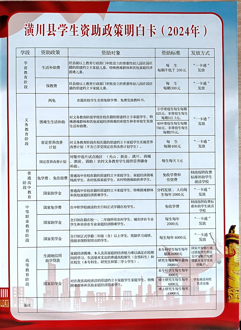 学校在校内公告栏张贴明白卡,各班级及时在班级群内转发明白卡照片,并认真组织召开“国家资助政策宣传”主题班会。