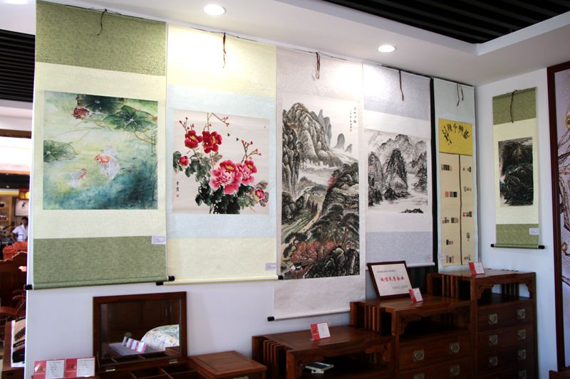 随后,光山书画院院长苏建夫人在致开幕词中说,经过几个月的精心准备,潢光一体化首届书画红木艺术收藏展览今天顺利开展了,这是一次别开生面的展览。此次展出的百余幅书画作品,有浑然古朴的篆隶,有工整隽秀的楷书、有挥洒自如的行草;绘画作品有自然山水、花鸟虫草;古今人物等多种题材,具有很高的艺术价值和观赏价值,值得广大书法爱好者参观和学习。开幕式结束后,到场嘉宾入场参观展出作品。