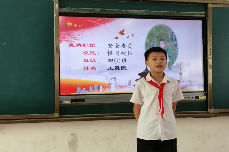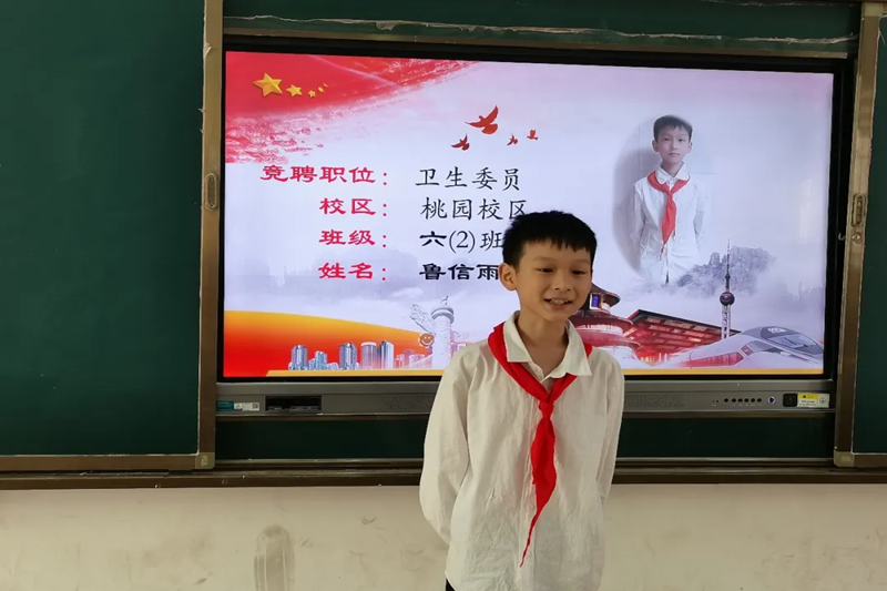 本次竞选共有23名同学参加,他们衣着整洁,佩戴鲜艳的红领巾,自信满满的走上舞台,讲述他们对大队部工作的看法,畅想自己上岗后的新思路,个个展现出高度的责任意识和服务意识。