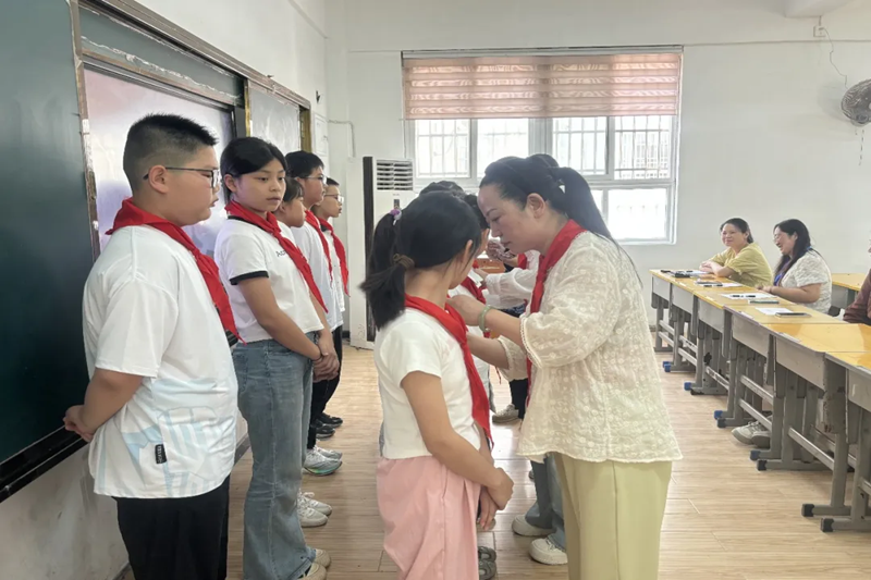 学校领导为新大队委们佩戴对章。竞选大队委不仅仅是一种荣誉,更是对自我能力的一种锻炼,相信新一届的大队委们将会挺起胸膛,勇担这份沉甸甸责任。