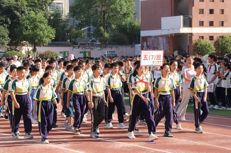 上午 8:20,运动会开幕式隆重拉开帷幕。在激昂的《运动员进行曲》中,国旗护卫队率先昂首阔步入场,他们步伐整齐划一,神情庄重肃穆,护卫着五星红旗庄严地走过主席台。紧接着,鼓号队奏响激昂的旋律,各班级方阵依次登场,同学们身着统一的服装,喊着响亮的口号,迈着矫健的步伐,精神抖擞地通过主席台,充分展示出各自的风采与特色。有的班级还精心准备了精彩的节目表演,赢得了现场观众阵阵热烈的掌声和欢呼声。