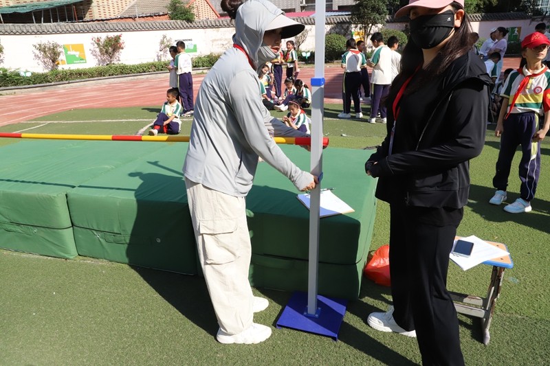 在赛场上,不仅有运动员们的精彩拼搏,还有一群默默奉献的工作人员和志愿者。裁判员们认真负责,始终坚守岗位,严格依据比赛规则进行精准裁判,有力地保障了比赛的公正性;老师们在一旁为学生们加油助威,悉心指导,不断给予他们鼓励和支持;志愿者们则忙碌地穿梭在各个比赛场地,为运动员们提供贴心周到的服务,他们搬运器材、维持秩序、记录成绩…… 他们的辛勤付出为运动会的顺利进行提供了坚实有力的保障。