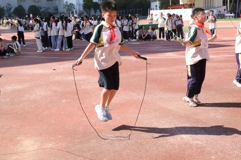 本次运动会设有田赛、径赛两大类项目,涵盖了短跑、中长跑、跳远、跳高、垒球、接力赛、跳绳等多个丰富多样的比赛项目,充分满足了不同年龄段学生的兴趣和特长。比赛过程中,运动员们个个斗志昂扬,精神抖擞,在赛场上全情投入,奋勇争先。跑道上,选手们犹如离弦之箭,飞速疾驰而过,他们你追我赶,互不相让,全力向着终点冲刺;田赛场上,运动员们身姿矫健,腾空而起,一次次勇敢地挑战着自己的极限。