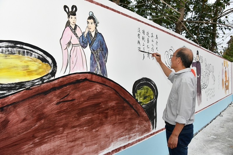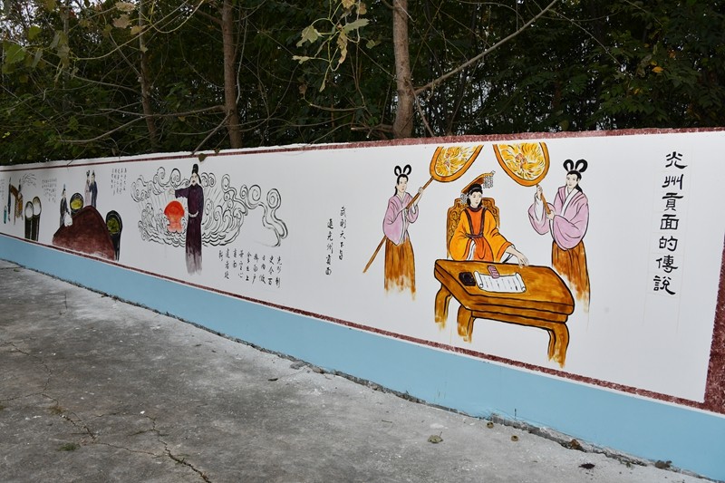 河南旺鑫食品有限公司,作为一家以生产空心贡面闻名遐迩的企业,承载着悠久的历史和独特的工艺。其空心贡面,不仅是味蕾上的享受,更是地域文化的传承与象征。此次墙绘活动,志愿者们紧紧围绕“光州贡面的传说”这一主题,深入挖掘贡面背后丰富的文化内涵。从曾经作为历代宫廷贡品的荣耀过往,到如今“空心贡面做成,仁义巧珍成婚”的民间美谈,每一个故事都蕴含着深厚的人文情怀和历史积淀。